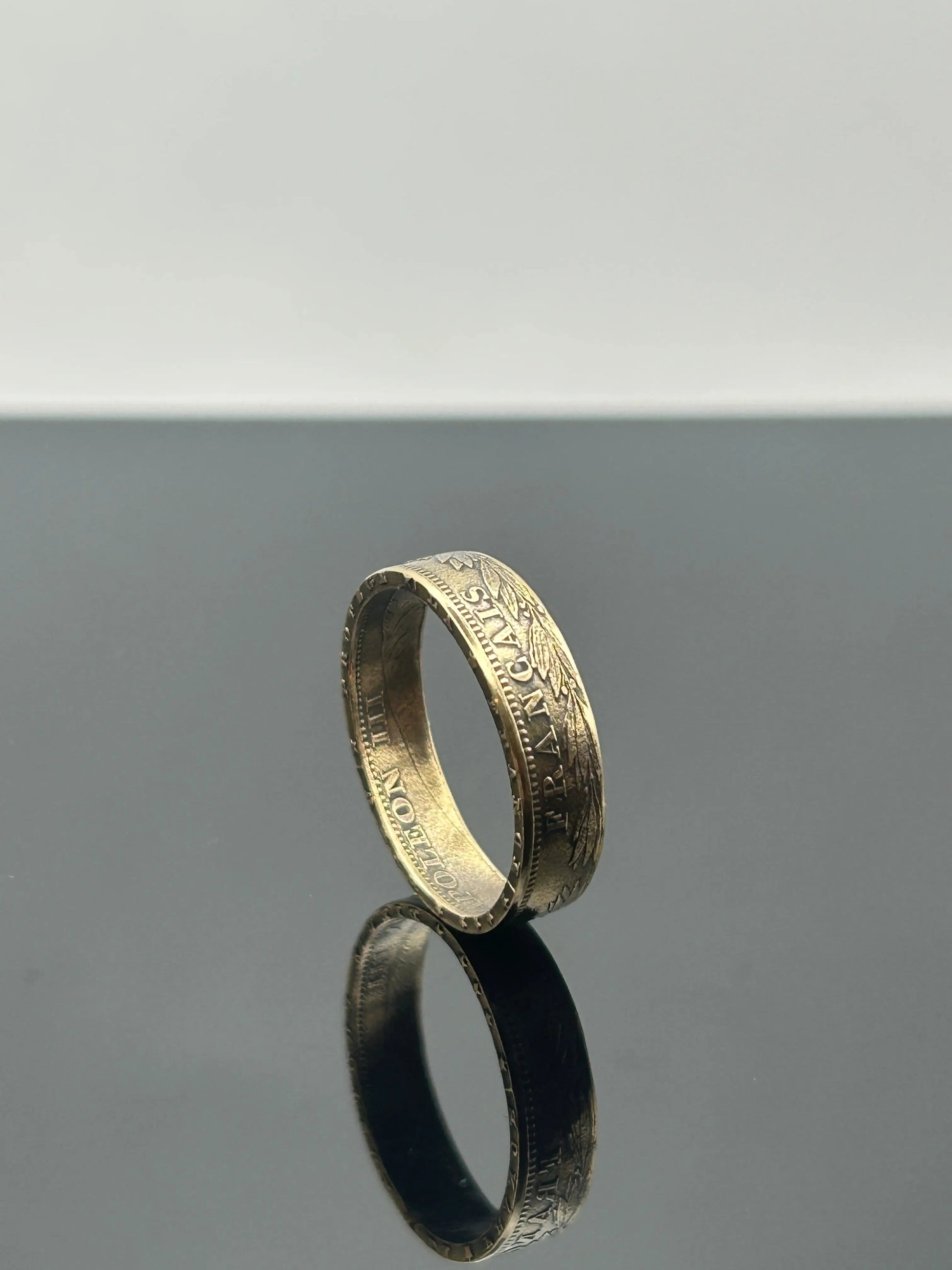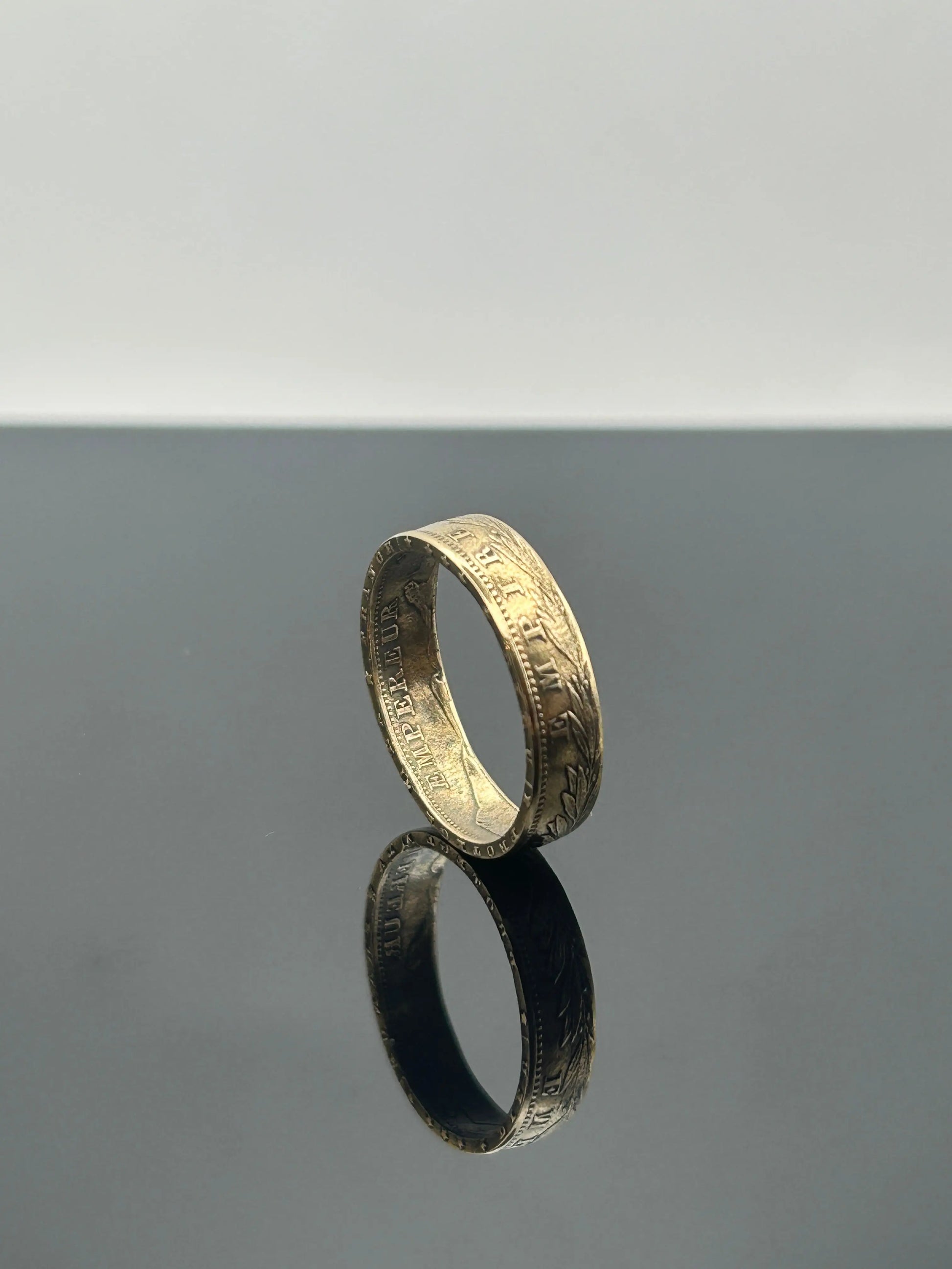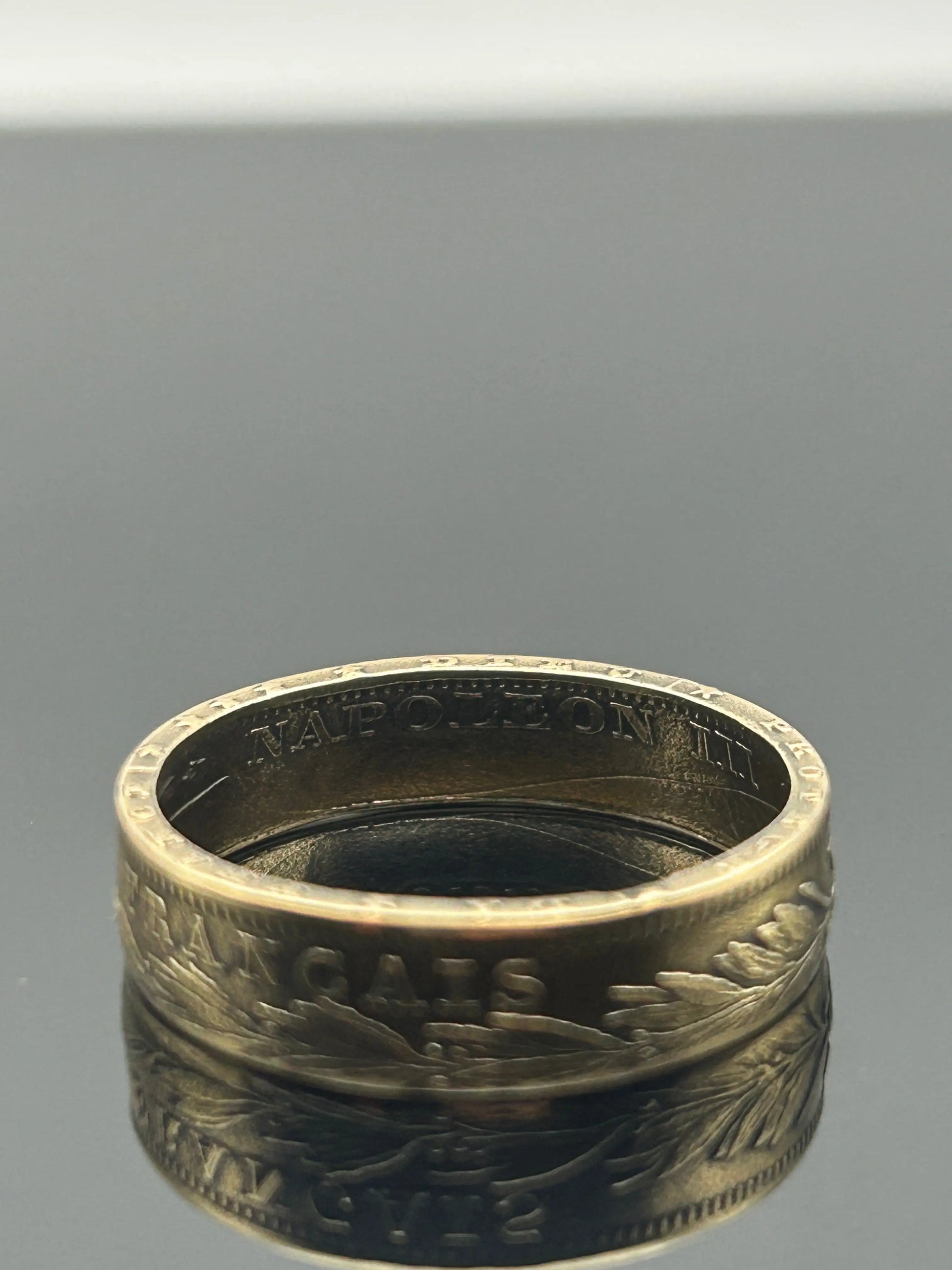 Chaque bague est réalisée artisanalement dans notre atelier, en respectant les reliefs et inscriptions d’origine de la monnaie, notamment le profil de l’Empereur Napoléon III. L’or massif confère à cette création une présence discrète mais précieuse.